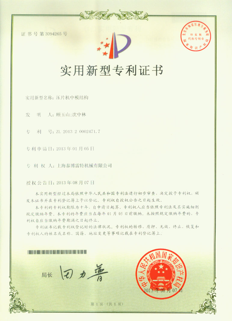 上海泰博雷特一種壓片機(jī)中模結(jié)構(gòu)專利